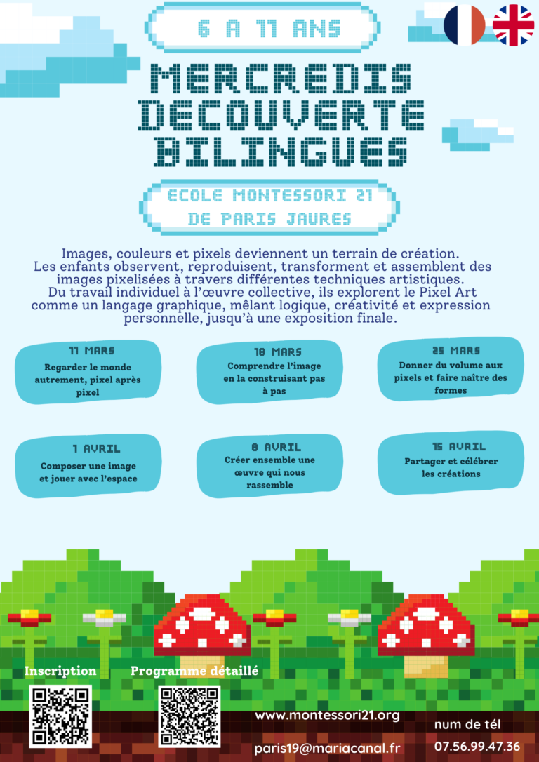 Le printemps s’annonce artistique à l’école Montessori 21 de Paris Jaurès ! Pour cette nouvelle période, nous invitons vos enfants à explorer des univers fascinants