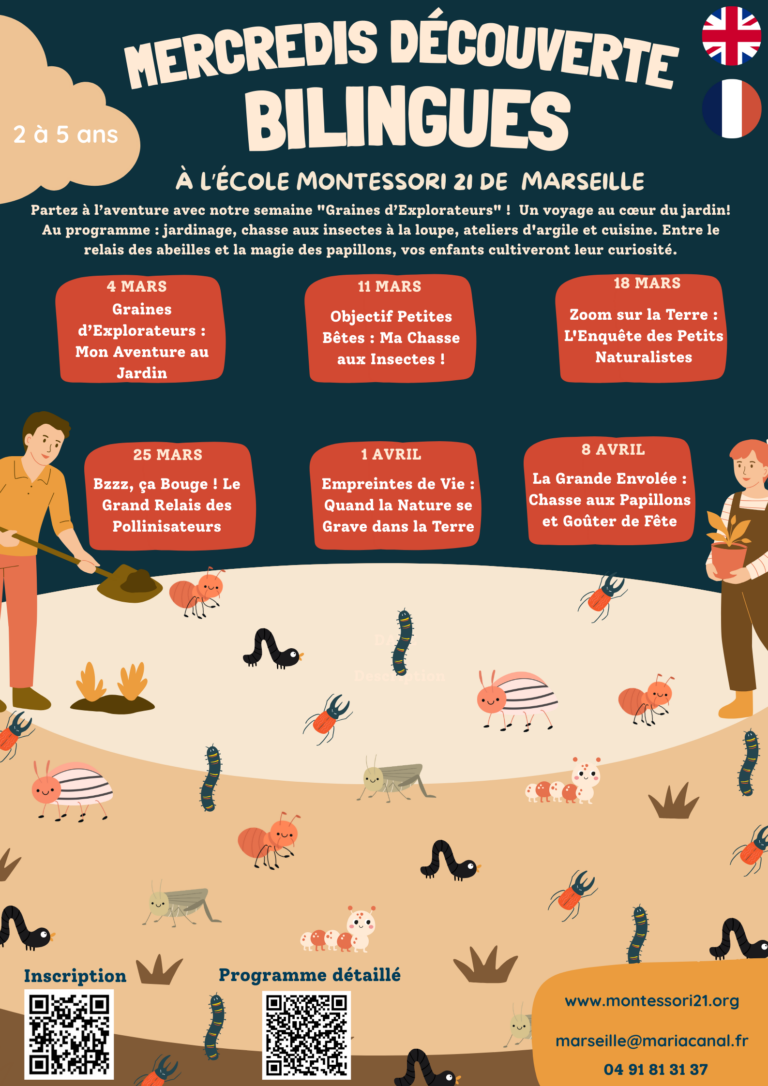 Inscription aux mercredis decouverte Le printemps arrive à l’école Montessori 21 de Marseille ! Pour les mois de mars et avril, nous proposons à vos